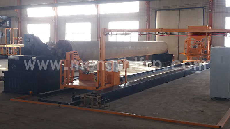 MSFW-3000型玻璃鋼夾砂管道生產(chǎn)線主要裝備:由兩套攪拌罐、制襯機(jī)、夾砂纏繞機(jī)、四套固化站、修整機(jī)、龍門脫模機(jī)、試壓機(jī)等組成,各單機(jī)按生產(chǎn)夾砂管道流水線進(jìn)行布置。